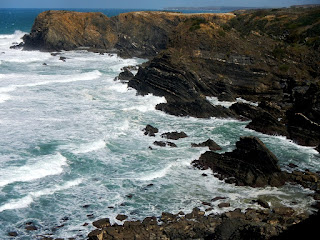 Após uma breve leitura das condições de mar num local pouco frequentado, resolvo descer e tentar saber se o local estava frequentado, já faz algum tempo que não frequento este local, e normalmente faço-o em pleno verão quando os sargos encostam mais ás pedras submersas e rebolos (pedras roladas) junto às falésias. Tinha apenas dois locais (A e B) onde poderia pescar dado a existência de algum vento e a pouca profundidade do local, um substrato rochoso com cerca de 100 metros.